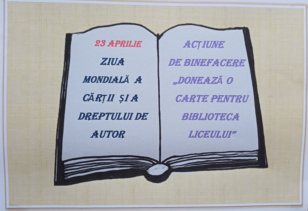 Cu acest prilej, în liceul nostru a fost organizată o acțiune de binefacere cu genericul „Donează o carte pentru biblioteca liceului”. Elevii și cadrele didactice au răspuns cu entuziasm acestei inițiative, contribuind la îmbogățirea fondului de carte al bibliotecii.